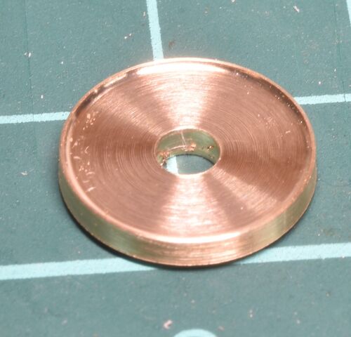 旋盤でお盆を挽き出します。 厚みはジグにロックタイトで貼り付けて、旋削。 薄いお盆になりました。 ジグに留めて割り出します。 この穴をガイドにリベットを打つわけです。 あれ?少し眠かったな。明日打ち直ししよう。 煙突もしれっと作りましたが、うう…