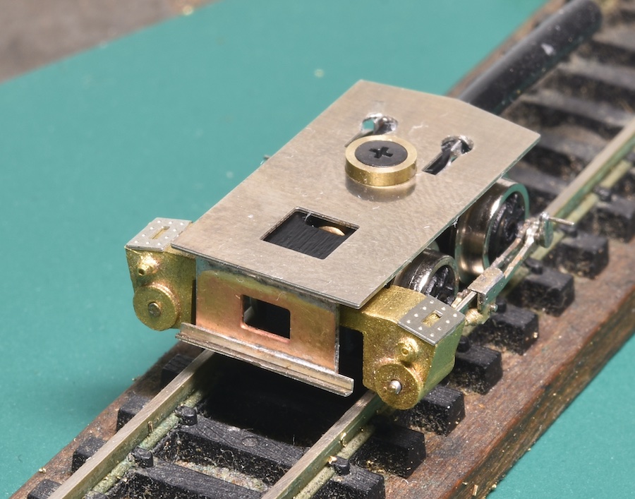 昨日組んだサイドロッドがどうしても引っ掛かります。何デヤ?長穴を調整しましたがダメ、あれ?と確認したところ軸距9mmの予定が10mmになってました。」つまり下回りの設計変更で軸距離を短くしたのに、エッチング原図に反映されていなかったのです。まあ、試作ですから直せば良いのですが、それじゃあサイドロッドは今回自作となります。それはあんまりなので、サイドロッドをカットして銀ローで継ぎました。ですからみれたものではなく、こんな画像でお茶を濁します。幸い他には問題はなく。明日の後部台車に進めそうです。