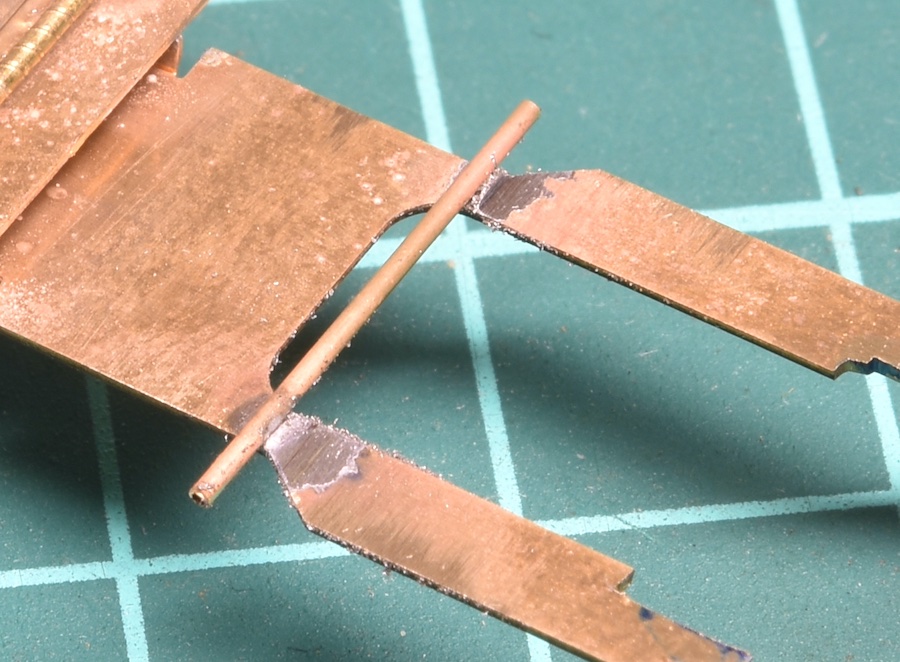床板に0.6×0.4パイプをハンダ付け。位置は第2動輪真上です。